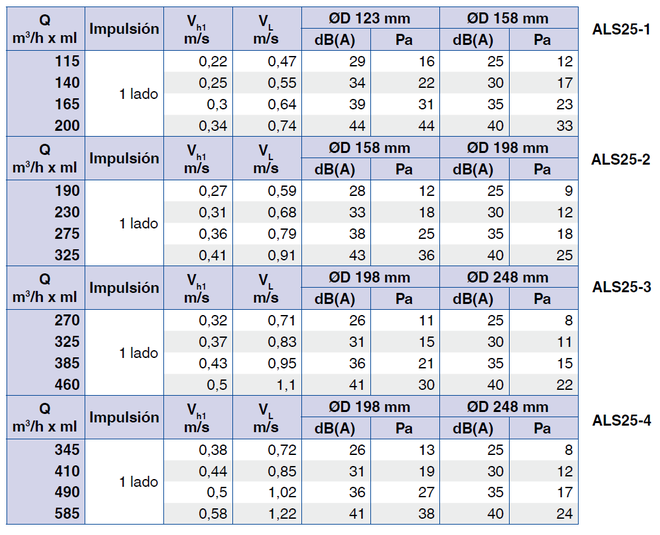 Los difusores lineales ALS pueden incorporar opcionalmente, remates finales y plenum de conexión aislado. Su instalación puede realizarse tanto en instalaciones de caudal constante como variable, en salas con alturas de entre 2.6 y 4.0 m.